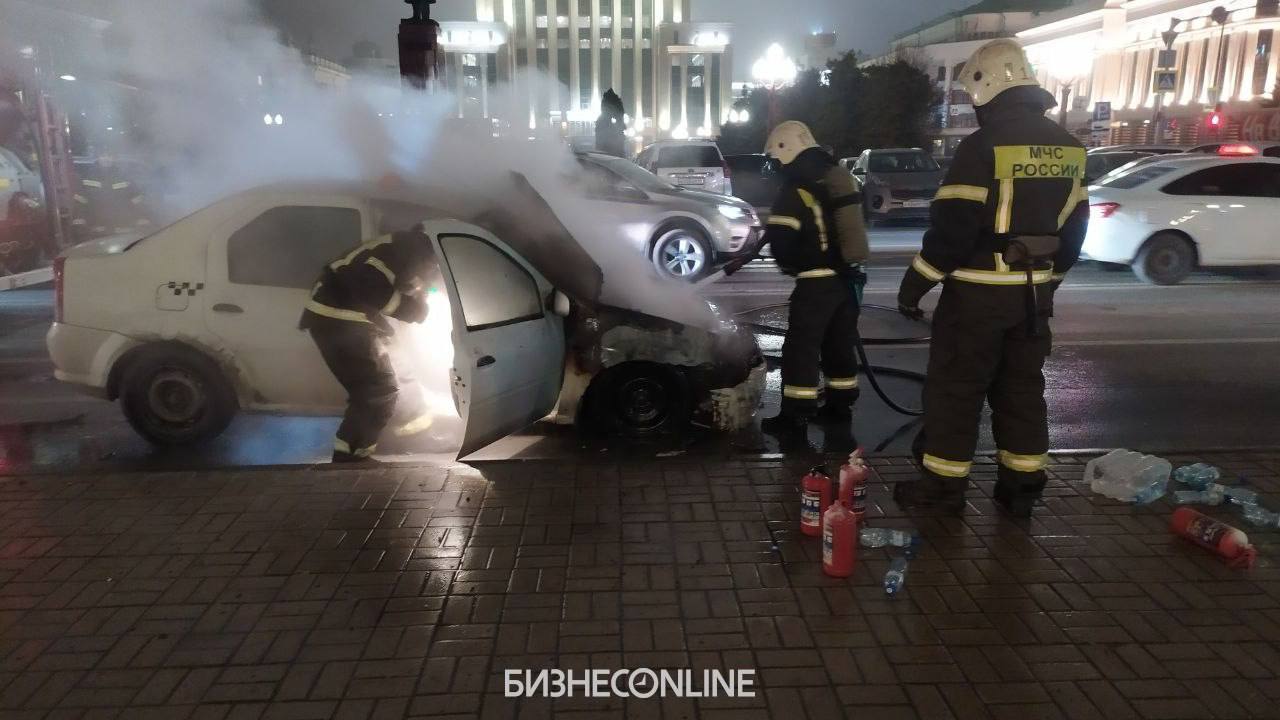 Пожар потушили сотрудники МЧС, на место прибыло две пожарные машины. До этого огонь пытались сбить очевидцы. Сейчас из-под капота Renault все еще поднимается дым.