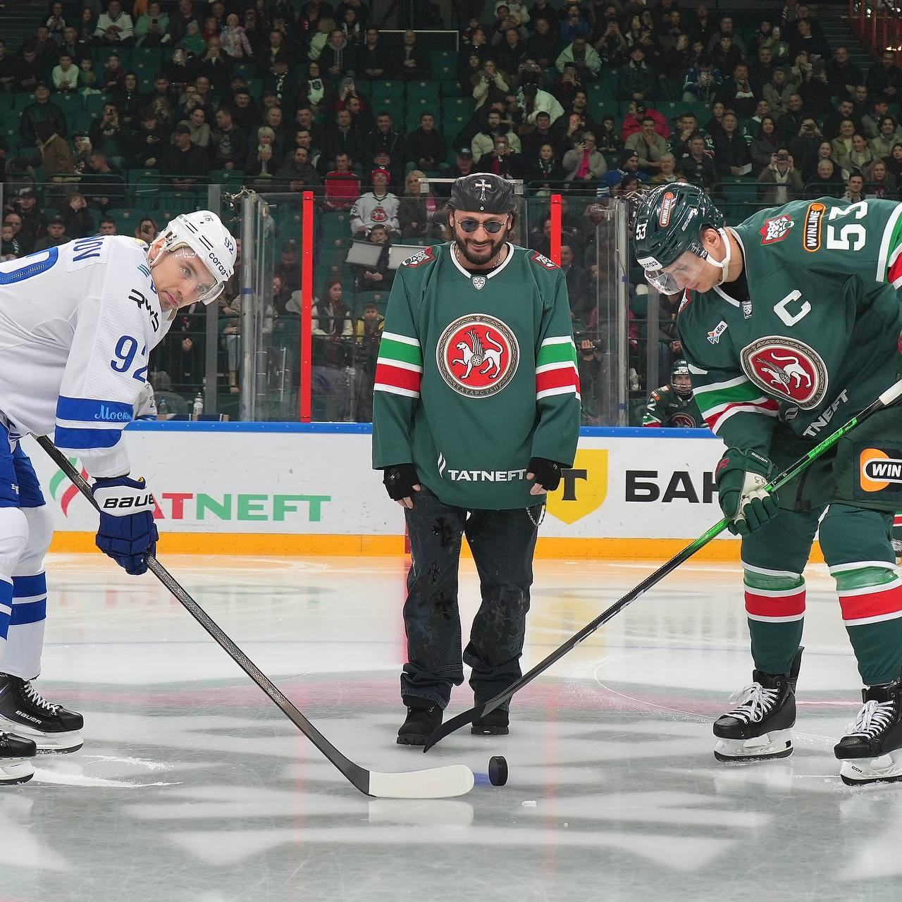 Певец произвел символическое вбрасывание перед первым периодом. По его словам, он нечасто бывает на хоккейных матчах.