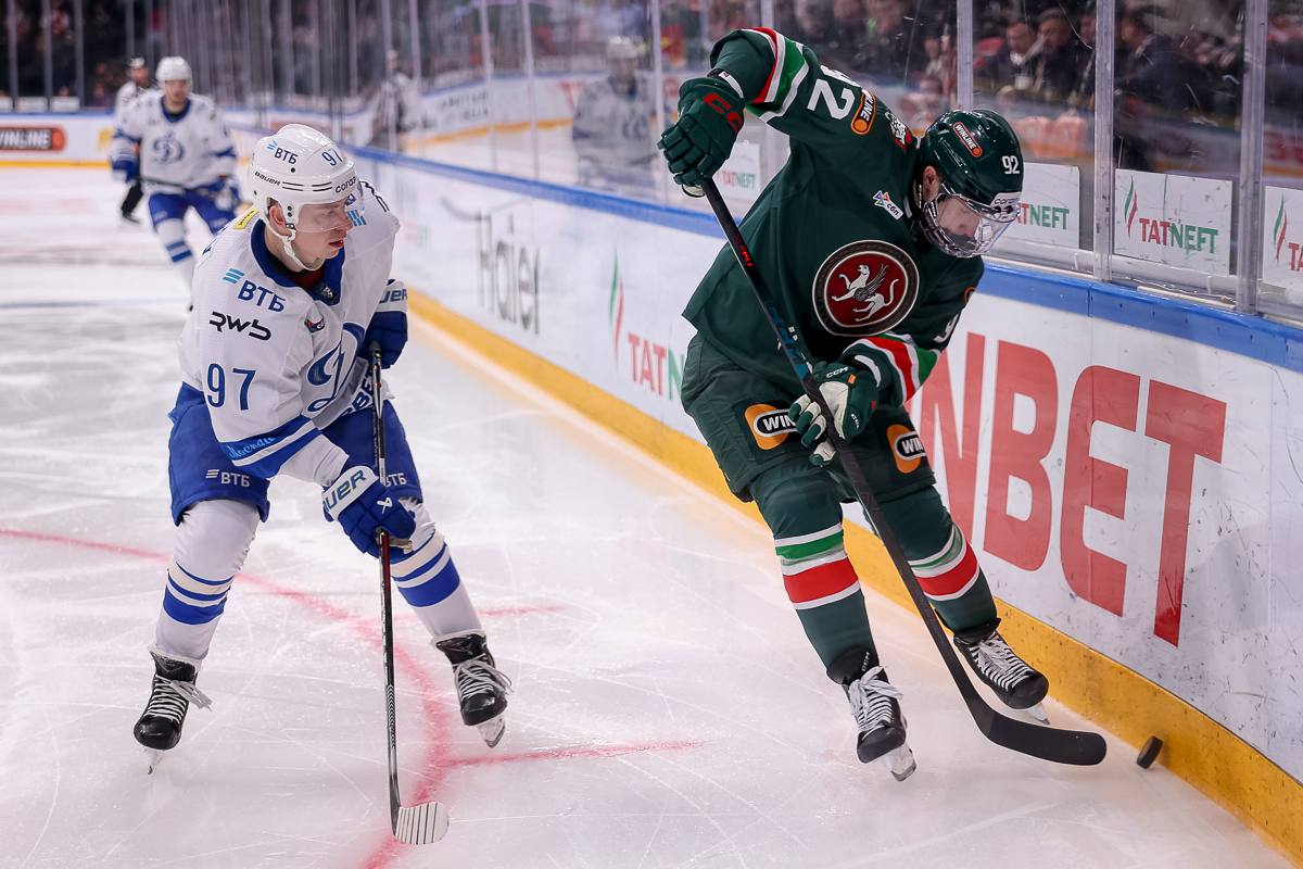 «Ак Барс» в домашнем матче КХЛ обыграл московское «Динамо» (5:4).