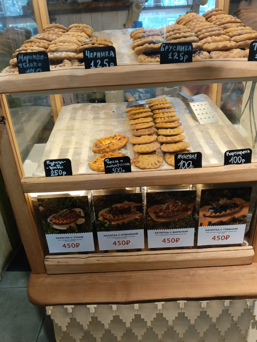 Специальное внимание уделено меню, в котором особенно выделяются калитки — традиционные карельские пирожки с разнообразными начинками. Гостям предлагаются калитки с олениной, морошкой, сёмгой и другими местными деликатесами. Отзывы посетителей подтверждают высокое качество блюд, и, хотя цены могут показаться высокими, это оправдано уникальностью предложений.