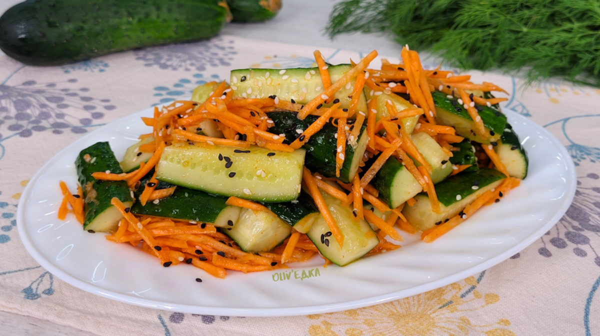 3. Огурцы перемешивают с морковью и заливают маринадом, добавляют кунжут и укладывают в холодильник на 2 часа. Они получаются идеальными – хрустящими и с забойным вкусом, сообщает Дзен-канал "oliv'едка | Душевные рецепты".