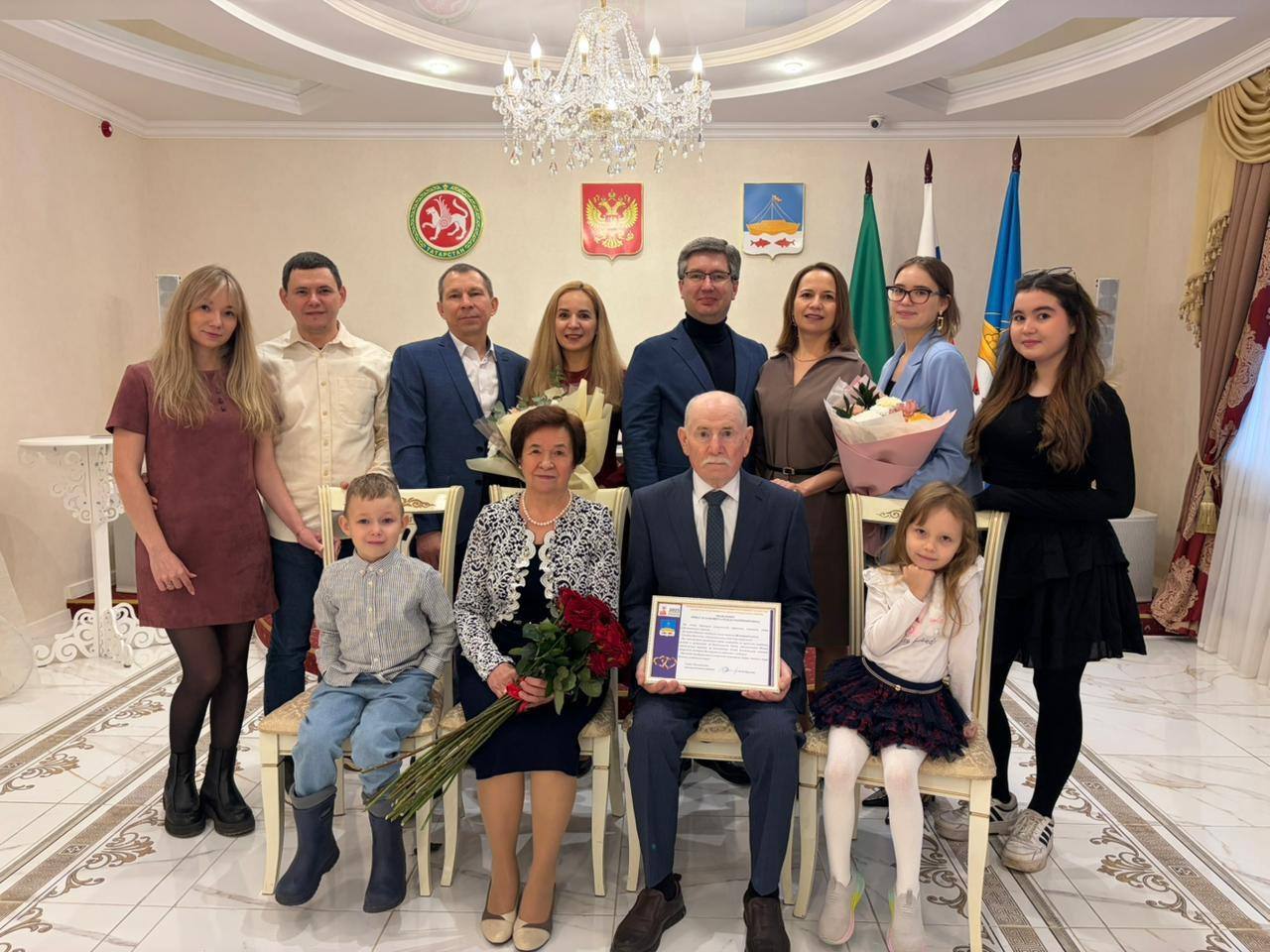 В честь 50-летнего юбилея семейной жизни Рифата Агзамовича и Резеды Рахимьяновны в ЗАГСе города Лаишево прошла торжественная церемония, которая началась с вальса молодоженов.