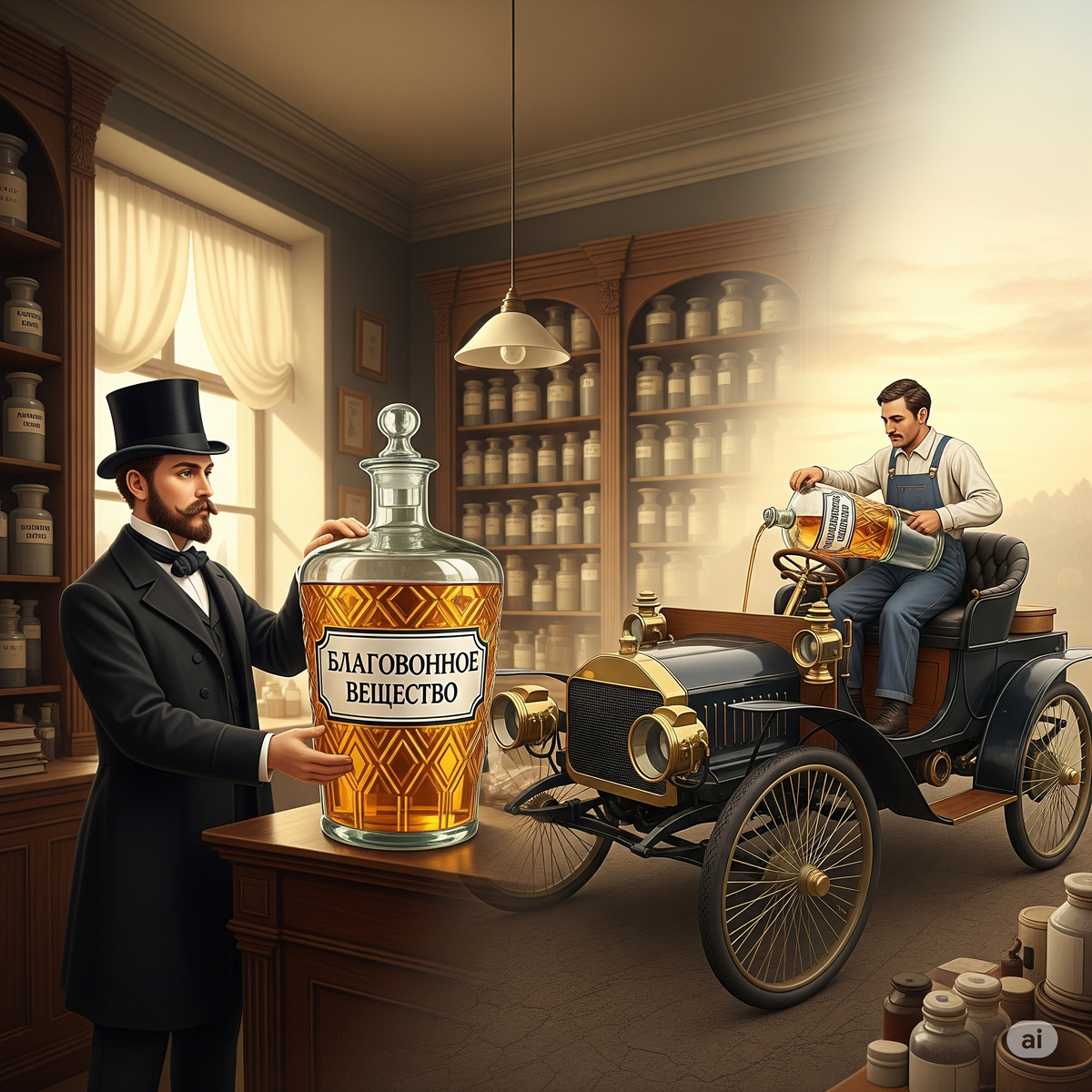 И вот, вместо того чтобы использовать "благовонное вещество" для очистки, покупатель вылил его в странный ящик на борту своего автомобиля. Это металлическое чудо, напоминающее ранний электромобиль, стало началом новой эры. "Я буду заезжать теперь три раза в неделю. Готовьте новые поставки. У вас в аптеке, пожалуй, лучший в городе бензин!" – сказал он аптекарю, и с этого момента эта жидкость, некогда предназначенная для горничных, стала топливом для первых автомобилей.