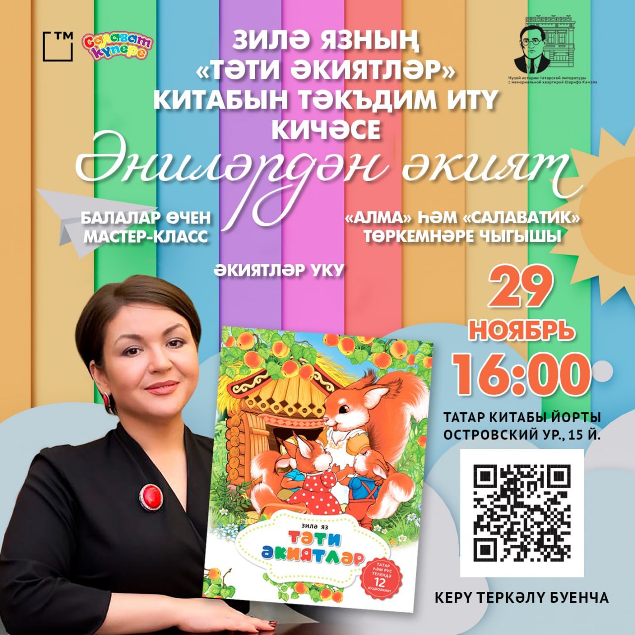 29 ноябрьд 16:00 «Татар китабы йорты»нда музыкаль-биюле кич узачак! Анда Зил Язны «Тти киятлр» китабы ткъдим ителчк.