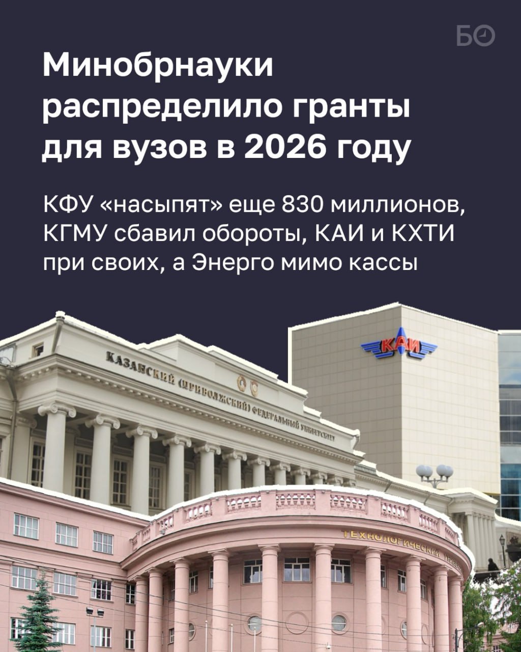 830 млн рублей получит КФУ по программе «Приоритет-2030» в 2026 году. Вуз попал в первую группу участников грантовой программы, в этом перечне 13 учебных заведений России.