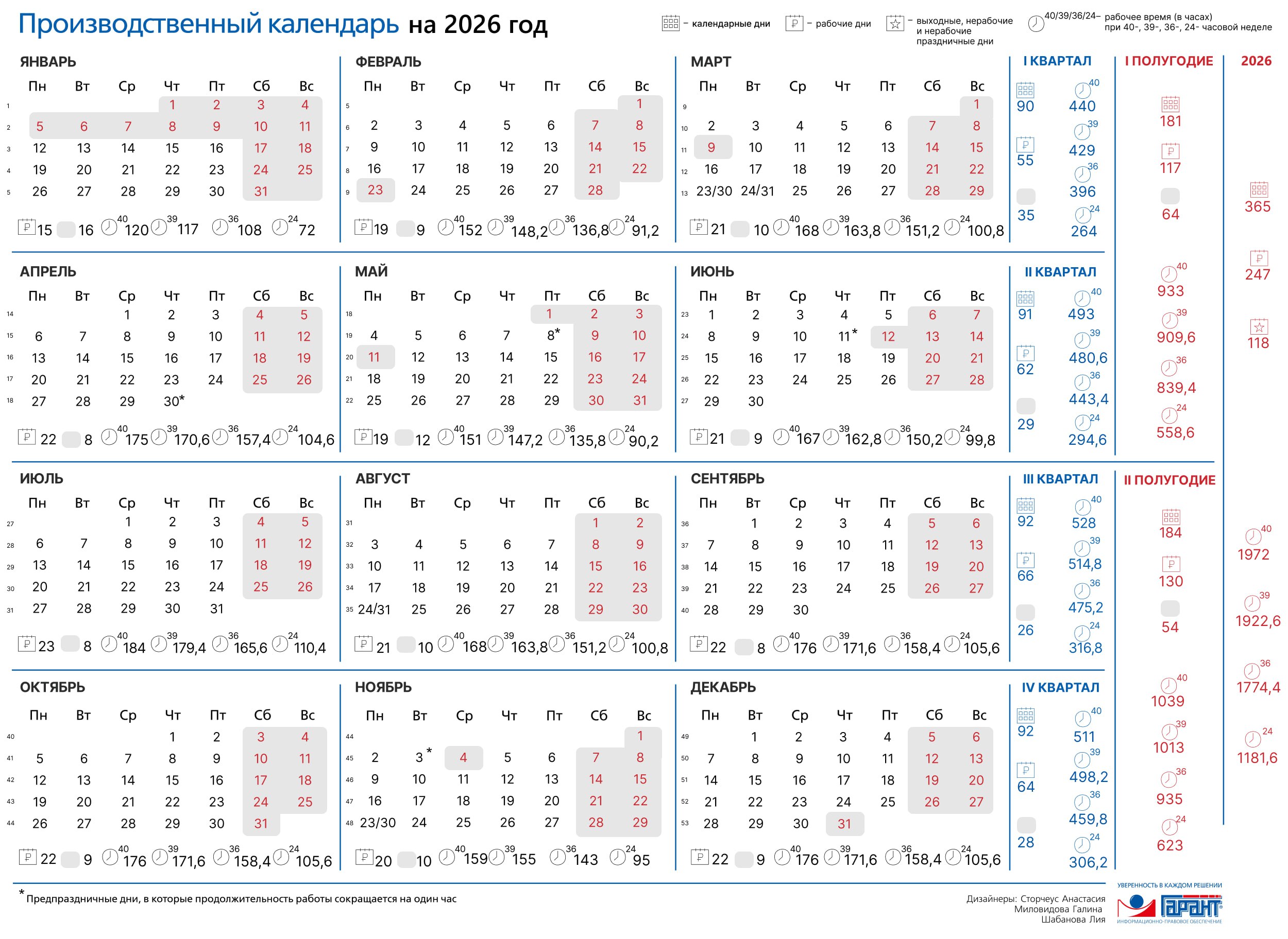 В 2026 году россиян ждут семь сокращённых рабочих недель