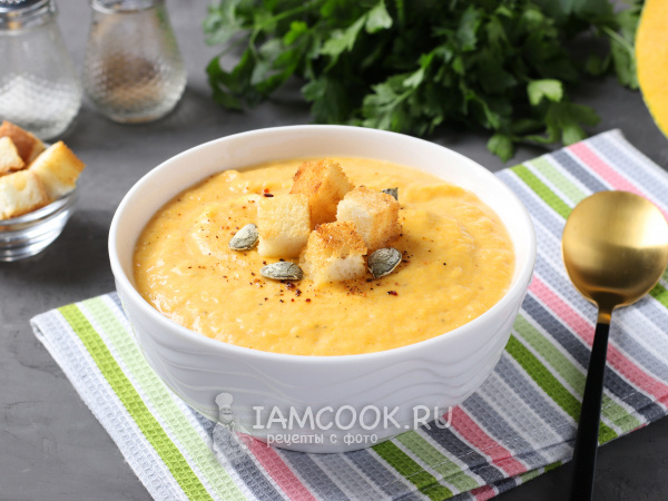 - Тыквенный суп-пюре с курицей и сыром:
