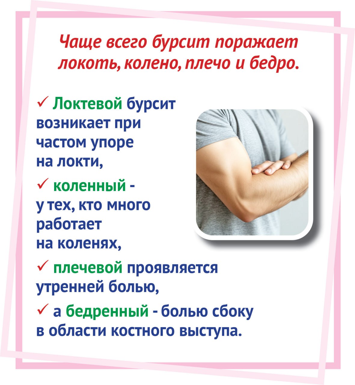 Вы замечали у себя мягкую болезненную шишку на локте после работы в саду или утреннюю скованность в плече? Скорее всего, вы столкнулись с бурситом. Что это за недуг, кто в группе риска и когда нужно бежать к врачу?