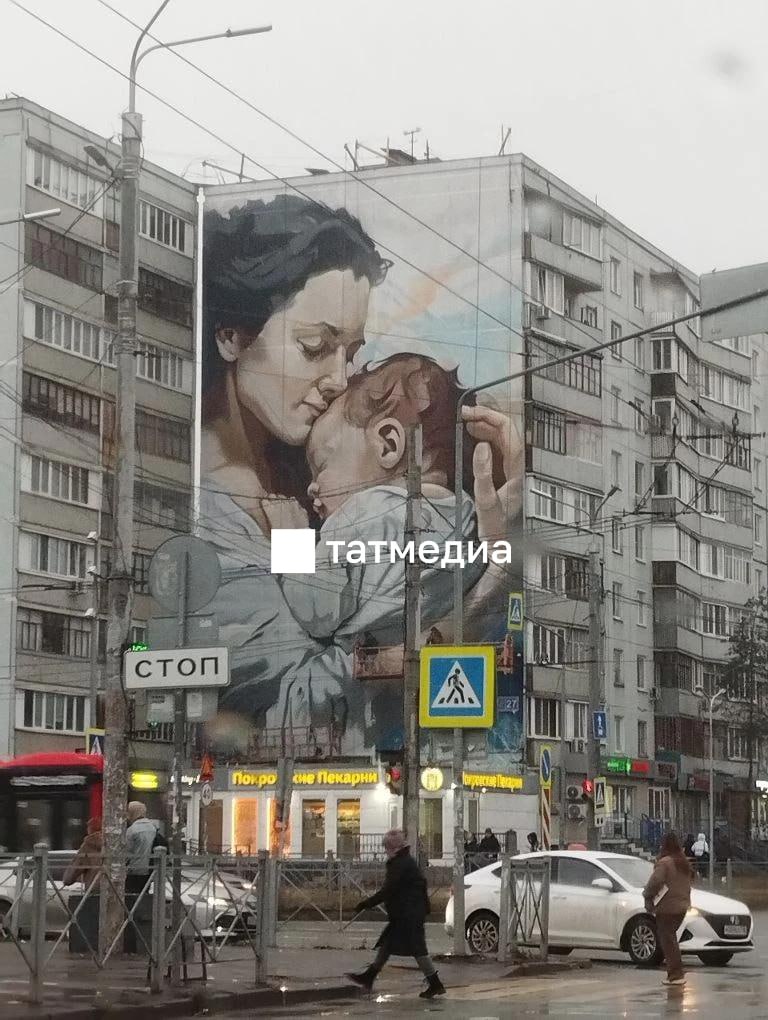 Ко Дню матери напротив Родильного дома ГАУЗ «ГКБ №7 им.М.Н.Садыкова» появился трогательный рисунок