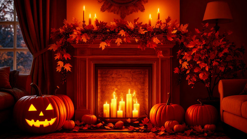 Первое, что способно преобразить пространство, — это освещение. Замена обычных ламп на оранжевые или фиолетовые добавит уют и загадочность в любой уголок. Гирлянды с теплым желтым светом создадут атмосферу таинственного мерцания. Особую изюминку придадут тыквы, вырезанные вместе с детьми и освещенные светодиодными свечами — они отлично справляются с задачей создания комфортного, но не слишком пугающего настроения.
