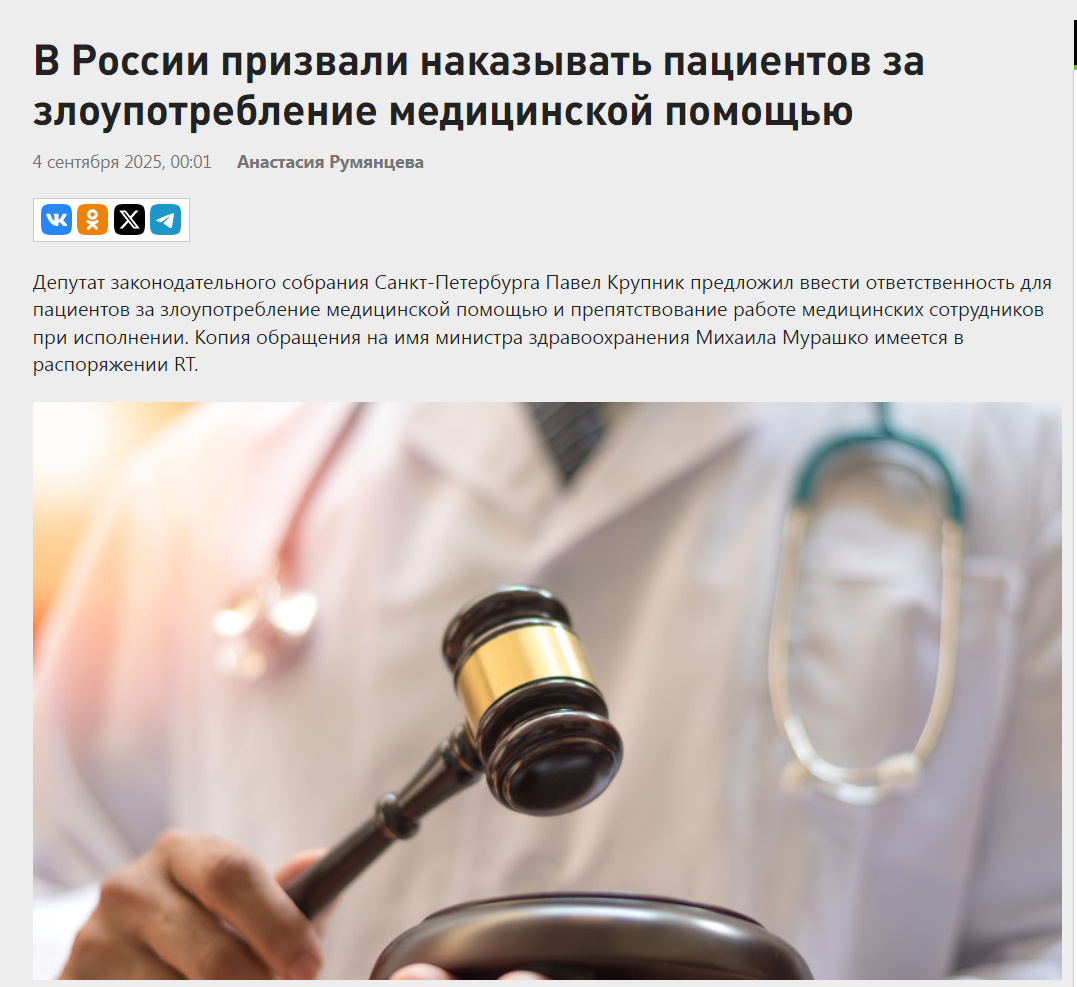 В сентябре 2025 года инициатива депутата Законодательного собрания Санкт-Петербурга Павла Крупника вызвала бурное обсуждение в обществе. Предложение ввести административные штрафы для пациентов, которые, по мнению властей, «злоупотребляют» медицинскими услугами, было на слуху. На первый взгляд, это кажется логичным шагом в борьбе с неконтролируемыми вызовами. Однако при более детальном анализе через призму законов, этических норм и реальности здравоохранения в России, ситуация выглядит намного сложнее, сообщает Дзен-канал "Медицинский юрист Алексей Панов".