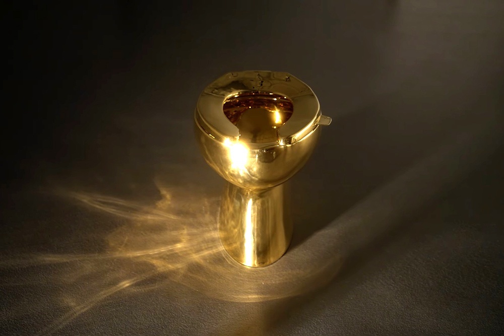 Унитаз, являющийся вторым экземпляром, был создан известным итальянским художником Маурицио Каттеланом. Его первый образец, выставленный в Бленхеймском дворце, был похищен в сентябре 2019 года, когда находился в действующей ванной комнате музея. Посетители могли использовать его по назначению, получая пять минут на "удовольствие".