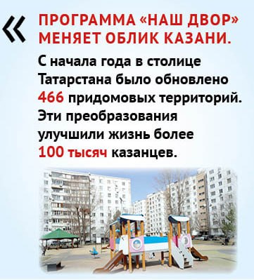 С начала года в столице РТ было обновлено 466 придомовых территорий, что улучшило жизнь более 100 тысяч казанцев.