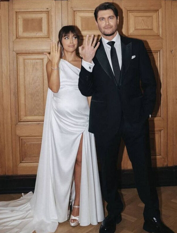 Певица Мари Крамбрери и популярный блогер Дава связали себя узами брака в феврале 2025 года. Пара не только объявила о своем союзе, но и поделилась радостной новостью о предстоящем пополнении в семье. На свадебных фото невеста позирует в белоснежном платье с эффектным разрезом и впечатляющим шлейфом. Несмотря на свою беременность, она предпочла шикарные туфли на каблуках, что добавило образу элегантности.