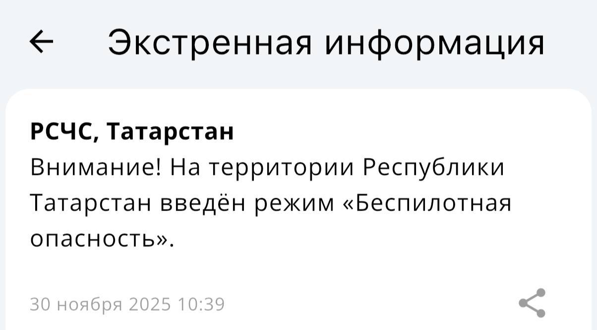 «Беспилотная опасность» - в случае выявления БПЛА, движущихся по направлению к республике.«Угроза атаки БПЛА» - если беспилотники обнаружены на территории Татарстана.@tatmediaofficial | Все каналы Татмедиа™ 1-й новостной MAX-канал Татарстана -...