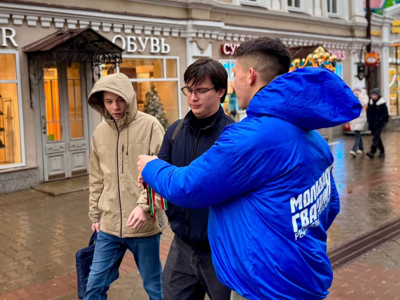 Накануне на пешеходной улице Баумана прошла праздничная акция, приуроченная ко Дню флага Республики Татарстан. Активисты «Молодой Гвардии» и «Института Молодежи» поздравили жителей города и раздали символичные ленты-триколоры.