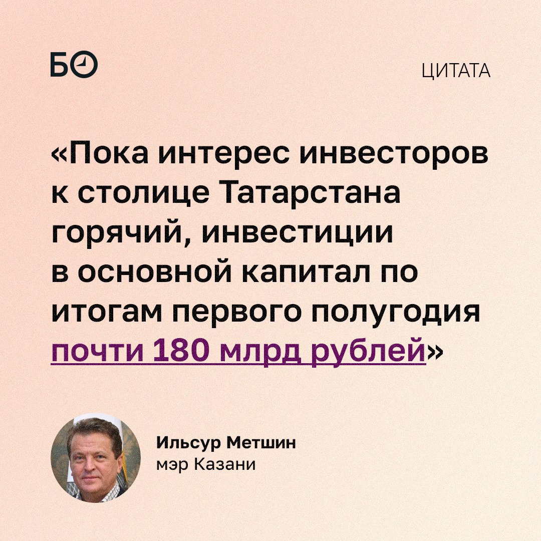 Инвестиции в основной капитал в Казани по итогам первого полугодия 2025 года составили 180 млрд рублей. Это на 15% меньше, чем за аналогичный период прошлого года. Несмотря на снижение, столица РТ остается лидером среди городов-миллионников по объему инвестиций крупных и средних предприятий. Об этом на утреннем совещании рассказал замруководителя исполкома Ильдар Шакиров.