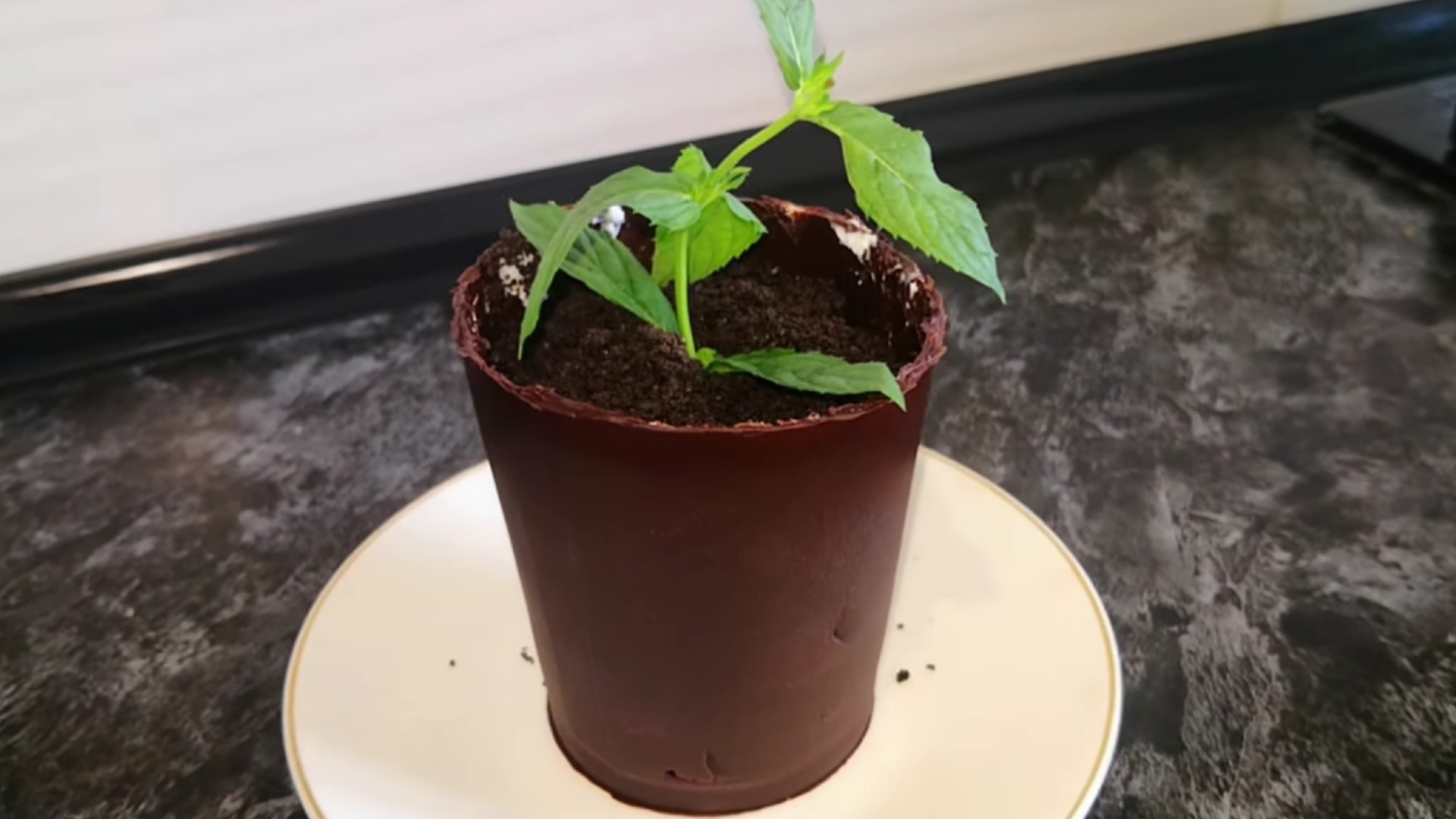 Засыпьте часть печенья в съедобный стакан, сверху выложите крем, а потом положите остатки крошек, советует Telegram-канал «Простые Рецепты». Осталось только воткнуть веточку мяты для украшения.