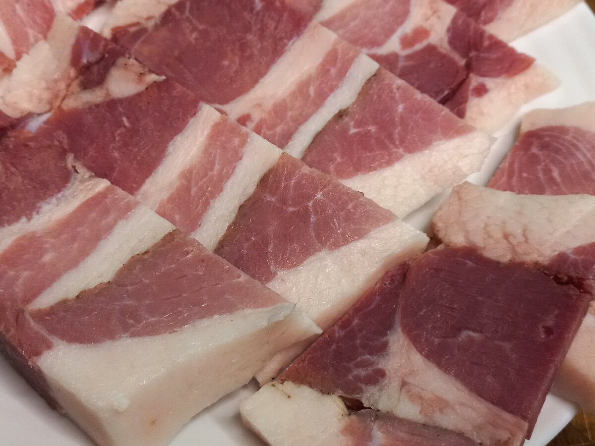 Для приготовления шикарного свиного рулета понадобятся срезанные с передней ножки кусочки сала со шкуркой и мясом. Оптимальный размер полотна – около 20 на 30 сантиметров, а толщина сала – 3-4 сантиметра. Это обеспечит правильную текстуру и вкус блюда.