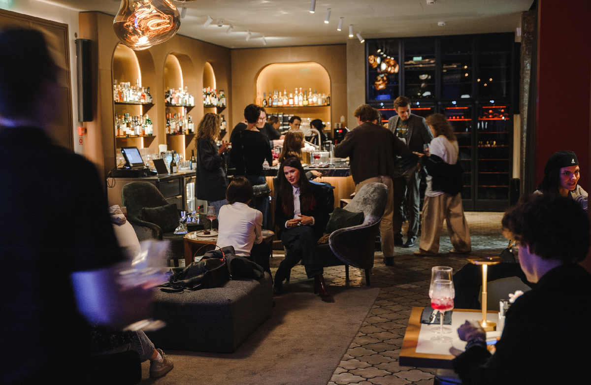 BarOkko представляется как пространство с темным, утонченным интерьером, где приглушенный свет создает уютную и интимную атмосферу. Фирменные оттенки темно-синего и черничного добавляют нотку современности, позволяя гостям чувствовать себя как дома во время той самой ночи кино.