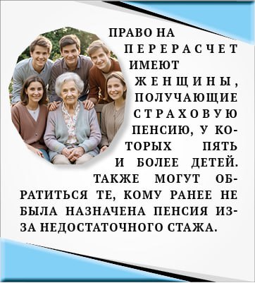 С 1 января 2026 года изменения, внесенные в пенсионное законодательство, позволяют учитывать в страховой стаж уход одного из родителей за пятью и более детьми до достижения ими полутора лет в размере 8,1 балла за каждого.
