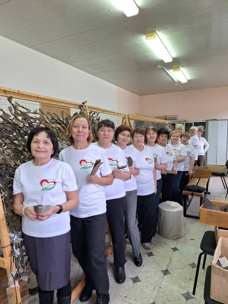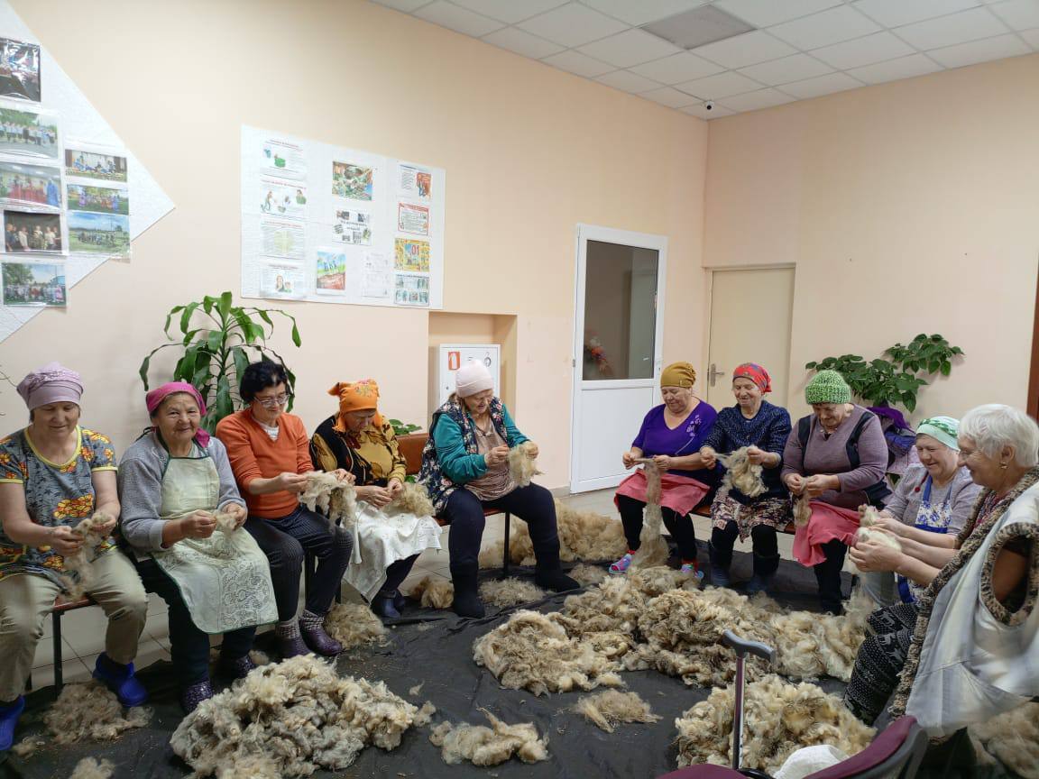 Волонтеры Ютазинского района продолжают плести маскировочные сети, вяжут теплые вещи, режут лапшу и прядут пряжу.