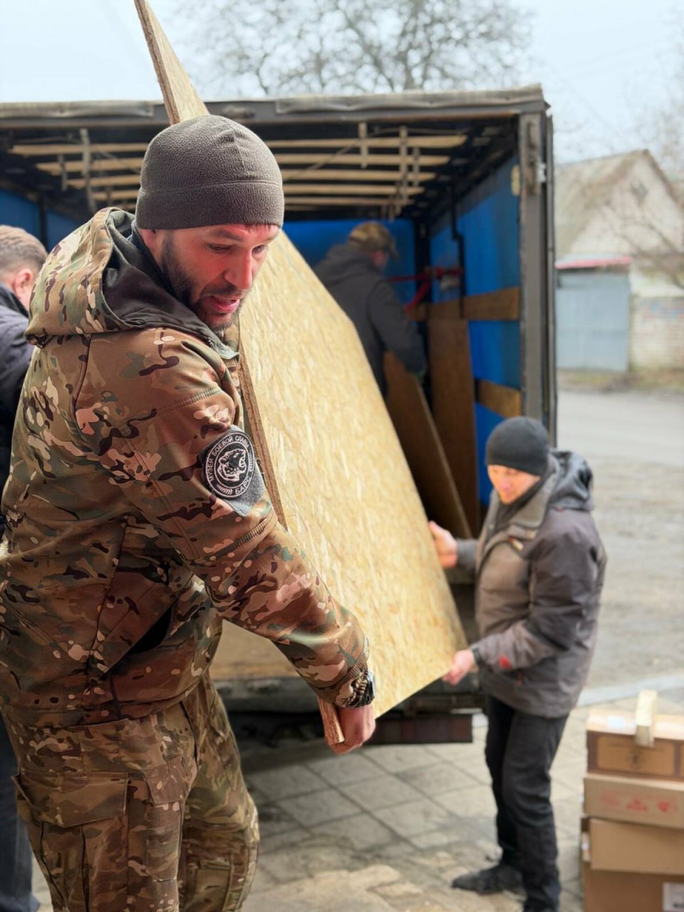 Бойцам на передовой были переданы три автомобиля, строительные материалы, генераторы, продукты питания и другие необходимые вещи.