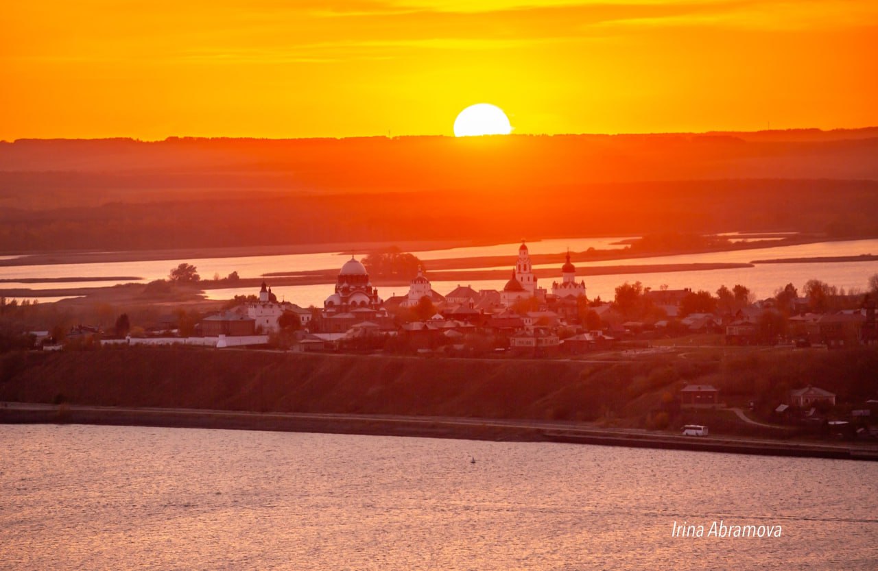 Солнце медленно скрывается за горизонтом над старинным Свияжском