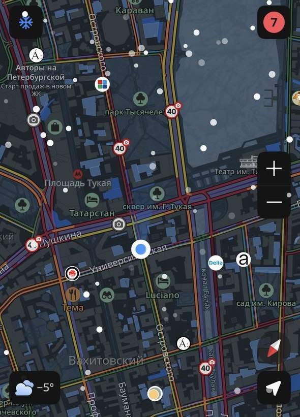 Движение затруднено в центре Казани на улицах Пушкина и Островского.