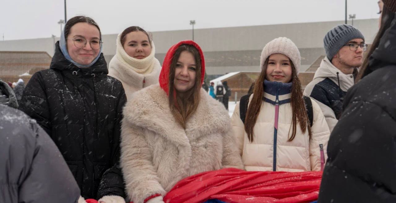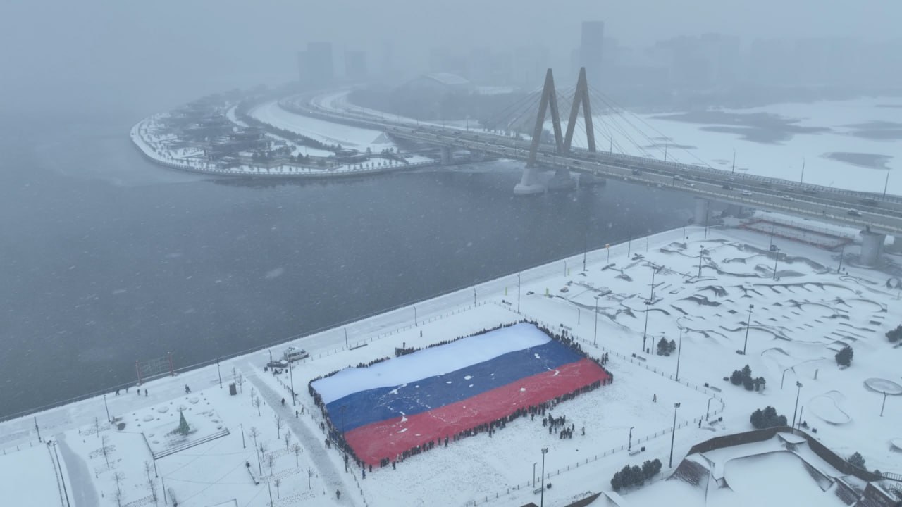 Более 500 активистов собрались в экстрим-парке «УРАМ», чтобы развернуть триколор размером 60 на 40 метров. В акции приняли участие студенты из казанских ссузов и вузов, работающая молодежь и участники студенческих трудовых отрядов.