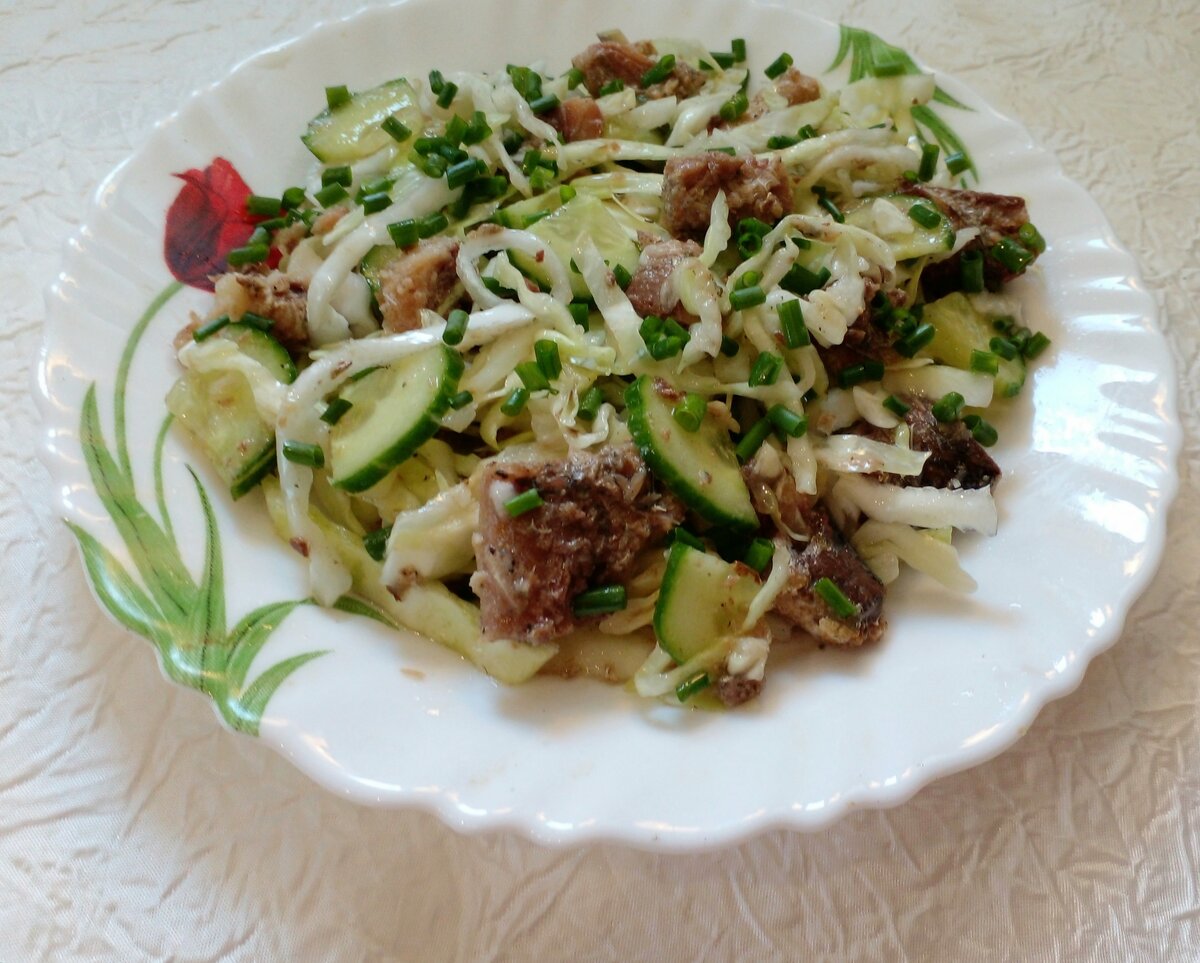 Далее, свежий огурец нарезается на четвертинки, после чего укладывается сверху капусты, придавая легкость и добавляя хруст. Не забудьте о консервированных сардинах: их нужно открыть, слить лишнюю жидкость и добавлять в салат. Эта рыбка не только привнесет в блюдо насыщенный вкус, но и обеспечит необходимый запас белка.