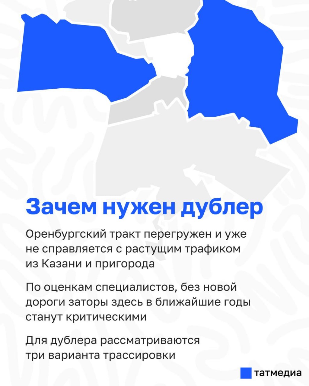 Минэкономразвития РФ дало положительную оценку участку дублера Оренбургского тракта в Казани протяженностью 6,7 км. Проект признан эффективным из-за высокой прогнозной нагрузки и сокращения времени в пути.