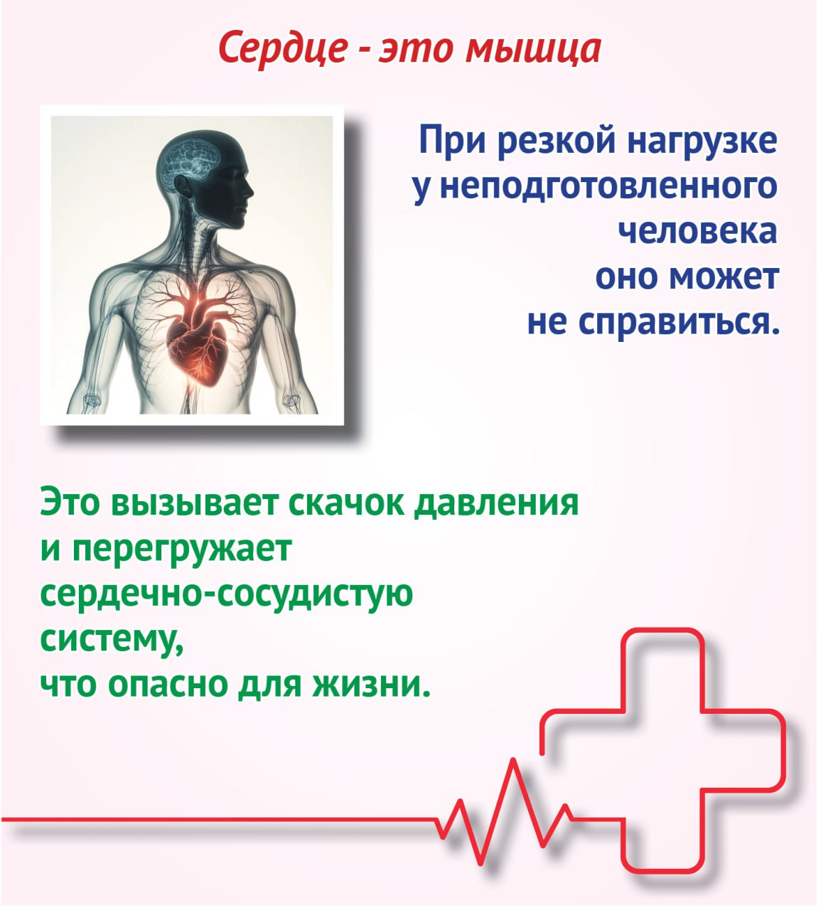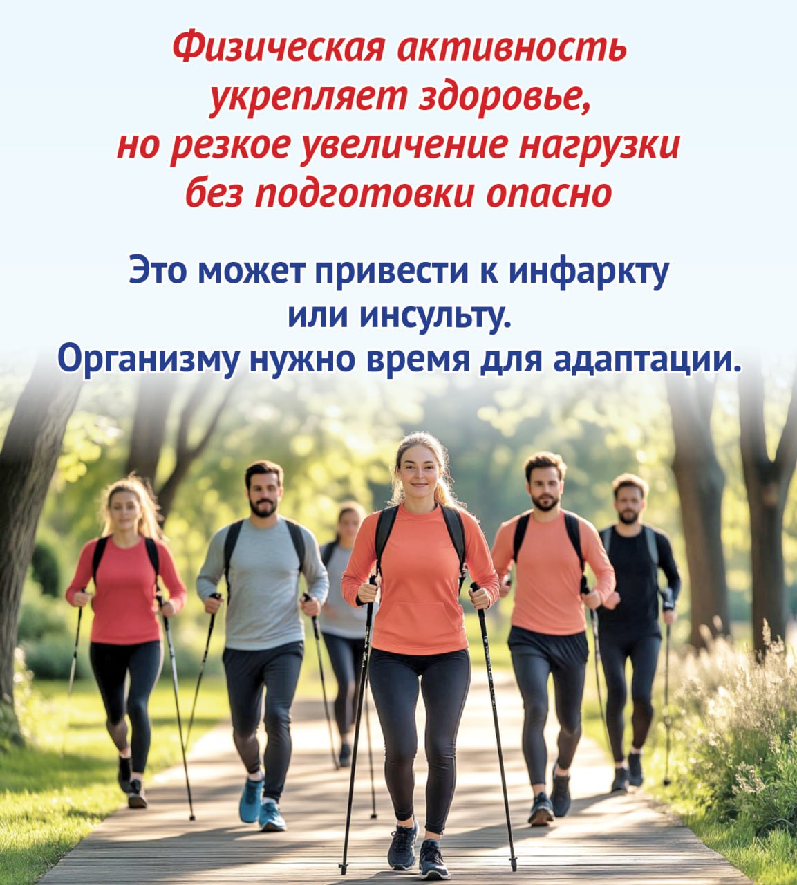 Физическая активность укрепляет здоровье, повышает тонус и поддерживает сердечно-сосудистую систему. Однако резкое увеличение нагрузок без постепенной подготовки может обернуться опасными последствиями — вплоть до инфаркта или инсульта.
