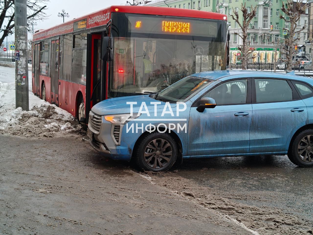 На Лево-Булачной в Казани иномарка столкнулась с автобусом