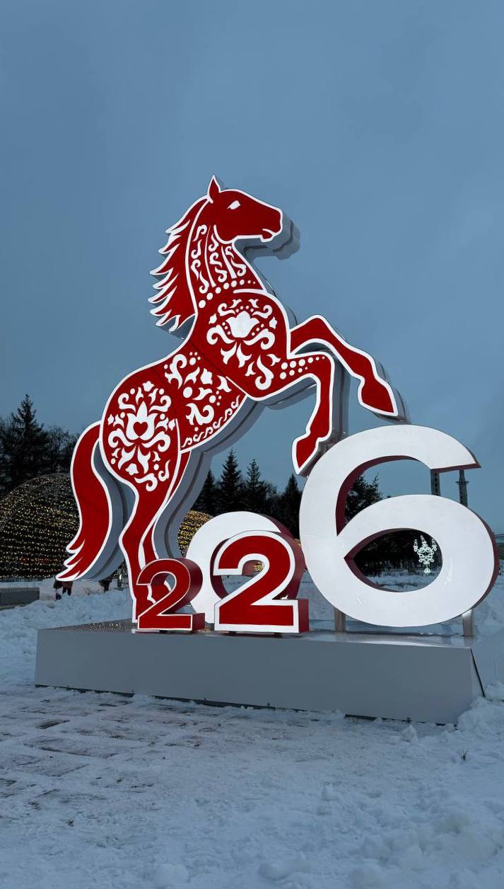 Здесь и огненная лошадь — символ наступающего года, и арт-объект, посвященный 400-летию города, которое будет отмечаться в 2026 году.