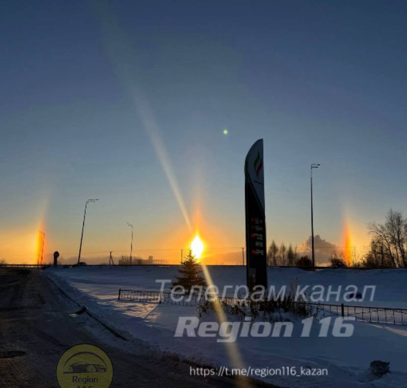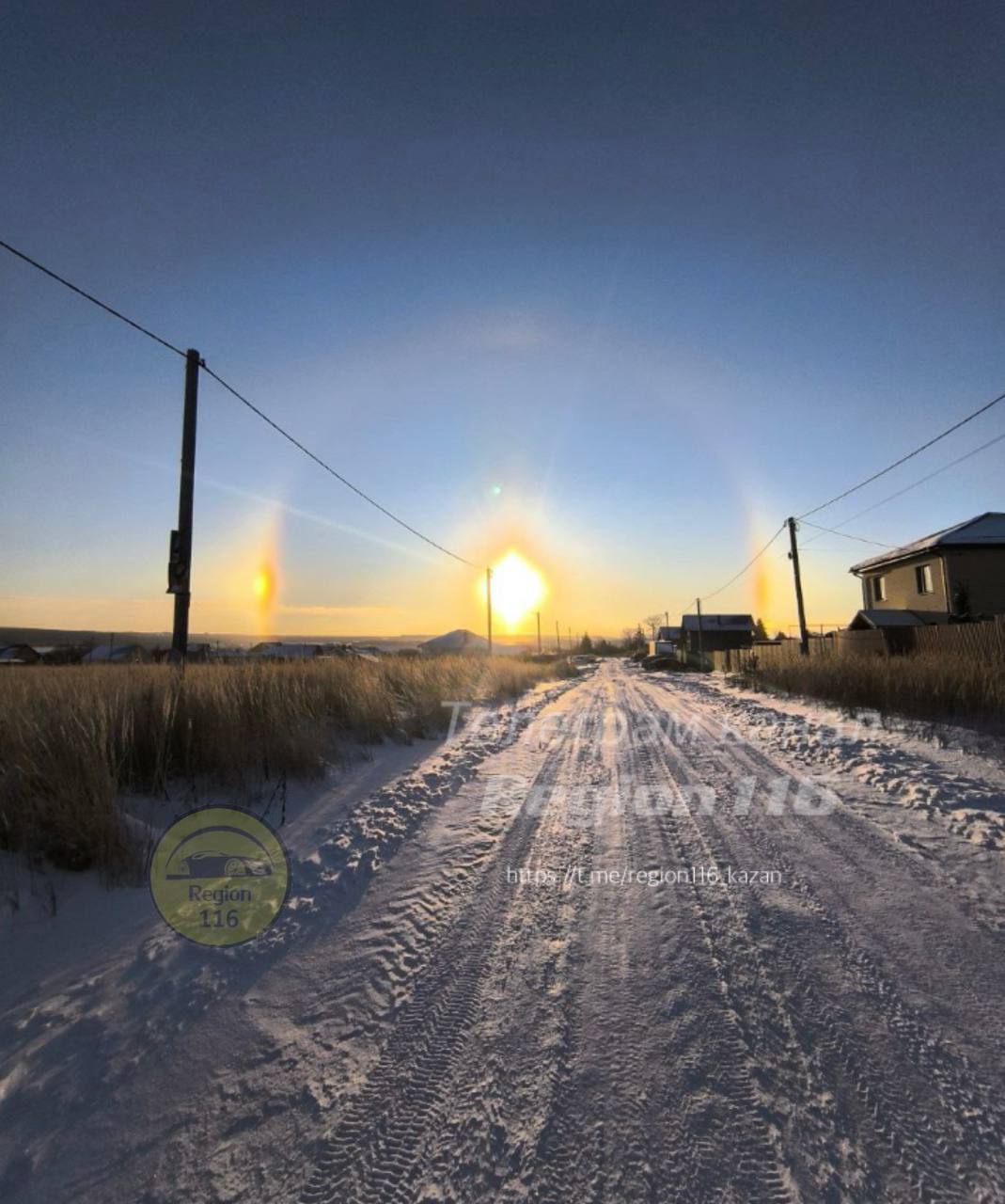 Гало появляется в мороз вокруг солнца или луны из-за преломления света в ледяных кристалликах в воздухе.