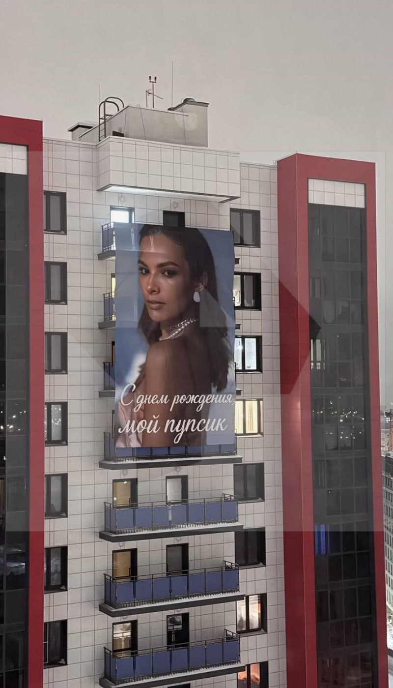 Мужчина решил сделать супруге оригинальный подарок и распечатал многометровый плакат с ее фото. После этого он договорился с главой управляющей компании и вывесил его на общих балконах соседнего дома на четырех этажах.