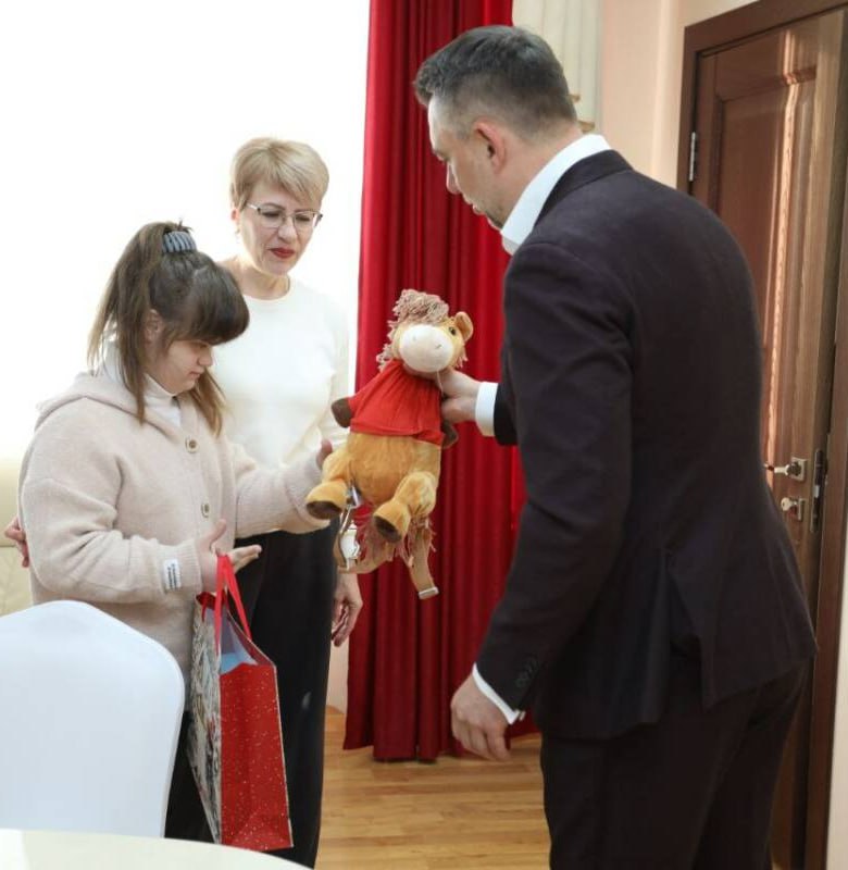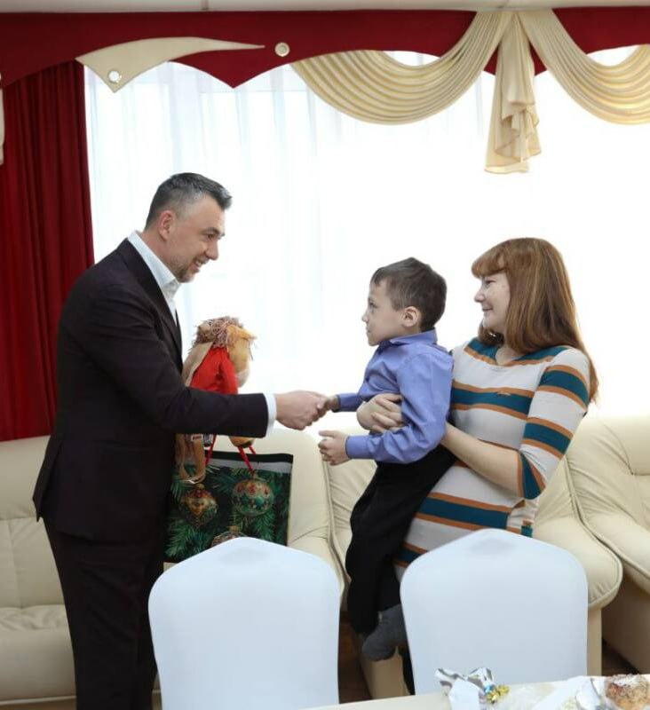 Особенные дети, подопечные местного волонтерского движения «Добродом», рассказали Дамиру Фаттахову о себе и своих увлечениях, а затем получили подарки, которые загадали перед новогодними праздниками.