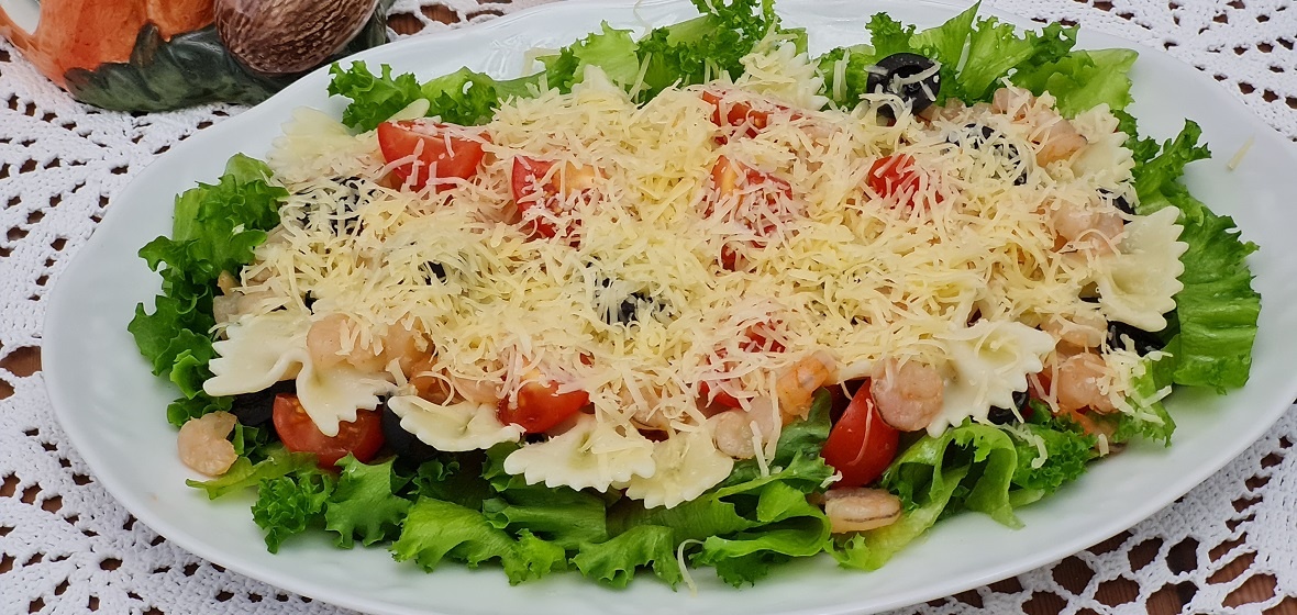 Переходим к пасте. Достаточно будет отварить 20 штук фарфалле, чтобы они не потеряли форму. На сковороде разогреваем ложку оливкового масла и наень отвергнутые креветки. Размороженные креветки достаточно прогревать около 30 секунд, а сырые – 2-3 минуты в зависимости от их величины. Готовые креветки размещают на пасте, поливают оставшимся маслом, включая нежный соус, таким образом, можно обойтись без добавления соли, так как ингредиенты сами по себе уже насыщены вкусом.