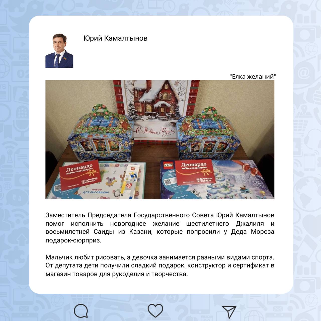 Депутаты Государственного Совета исполняют новогодние мечты и пожелания детей, о которых ребята написали в рамках Всероссийской благотворительной акции «Елка желаний».