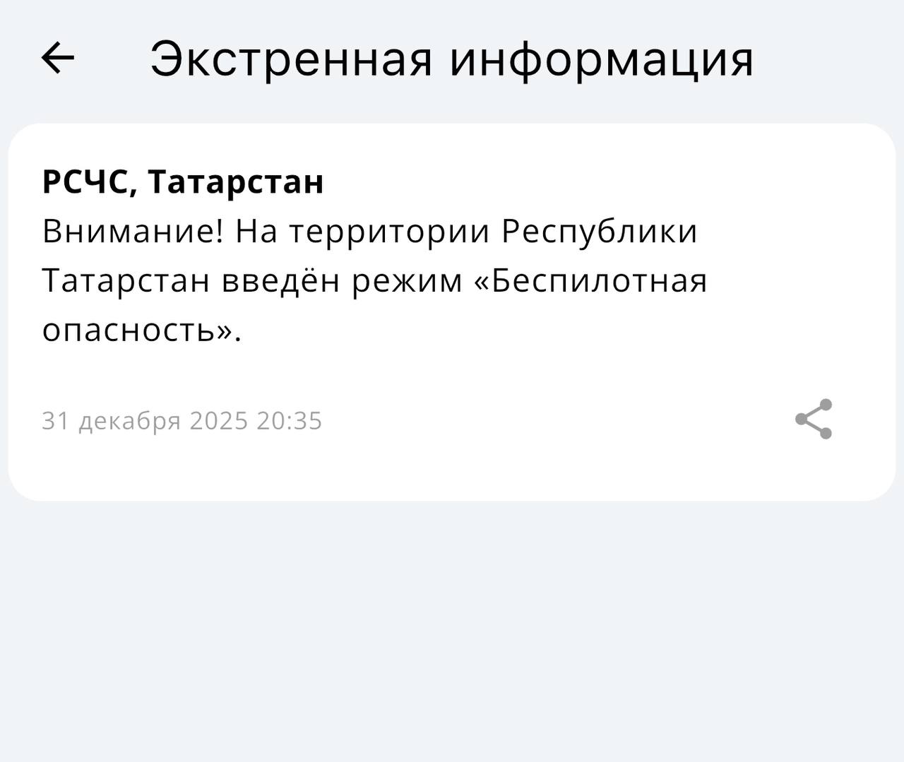«Беспилотная опасность» - в случае выявления БПЛА, движущихся по направлению к республике.«Угроза атаки БПЛА» - если беспилотники обнаружены на территории Татарстана.@tatmediaofficial | Все каналы Татмедиа™ 1-й новостной MAX-канал Татарстана -...