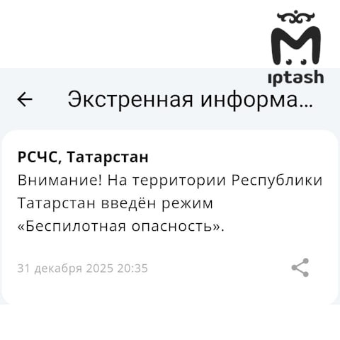 «Беспилотная опасность» - в случае выявления БПЛА, движущихся по направлению к республике.«Угроза атаки БПЛА» - если беспилотники обнаружены на территории Татарстана.@tatmediaofficial | Все каналы Татмедиа™ 1-й новостной MAX-канал Татарстана -...