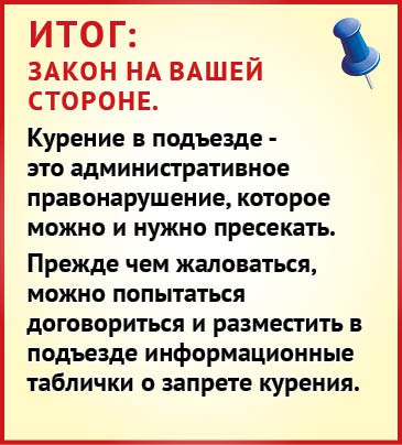 В нашем подъезде живет заядлый курильщик. Когда он выходит на лестницу подымить, все задыхаются от табачного смрада. Сколько уже раз делали ему замечания, прикрепляли на стену объявление с просьбой курить в квартире - бесполезно! Пусть человек наплевательски относится к своему здоровью, но почему дети и пожилые соседи должны страдать по его вине?