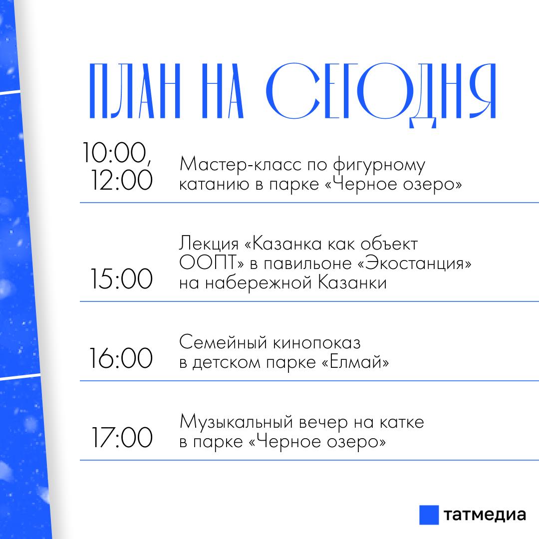 Мюзикл «Бременские музыканты» можно будет увидеть в казанском парке «Елмай» (начало в 14:00).Зимние забавы с театрализованным преставлением и командными соревнованиями пройдут в Нижнекамске...