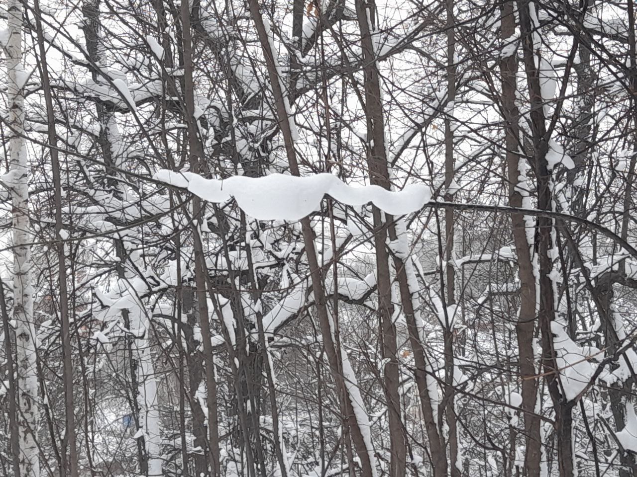 После снегопада. Известный поэт наблюдал, как «Метель лепила на стекле кружки и стрелы», а наш журналист присмотрелся, и обнаружил объёмные картины, созданные природой на ветках деревьев в одном из парков Казани. После обильного снегопада (при определённой доле фантазии) там можно было заметить белоснежного кота, длиннохвостую куницу, ящерицу, несколько змеек, сытого удава и множество разнообразных неведомых зверушкек. Снежные комочки, подобно кляксам из теста Роршаха, применяемого психологии для проверки душевного состояния человека, каждый воспринимает по-своему. А что вы разглядела на этих снимках?