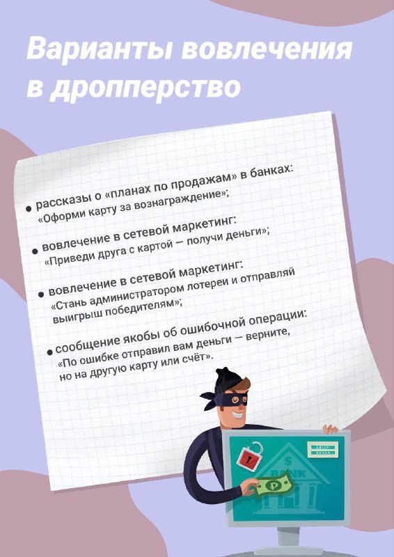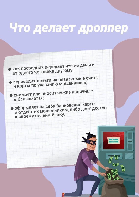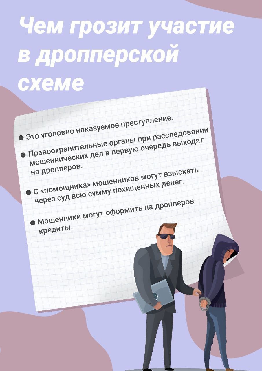Расскажите об этом своим детям: подростки в поиске легкого заработка нередко становятся дропами. Мошенники могут замаскировать участие в схеме обмана под бизнес, в котором можно неплохо подзаработать. Но в итоге заработать получается только большие проблемы