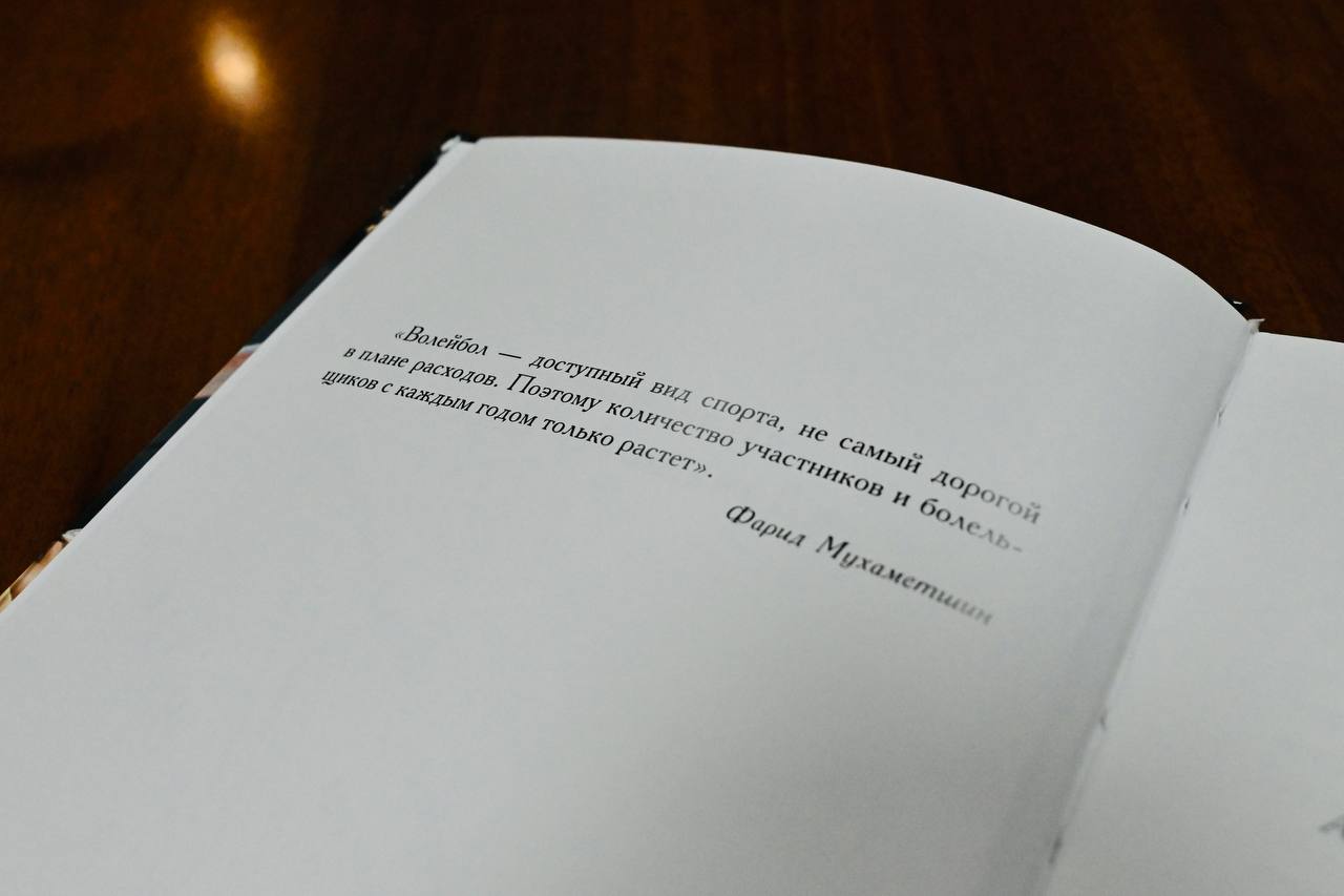 Сегодня, во время приема, Дмитрий Емельянов подарил Фариду Мухаметшину свою книгу – «Казаночка. Динамо-Ак Барс», посвященную волейбольному клубу.