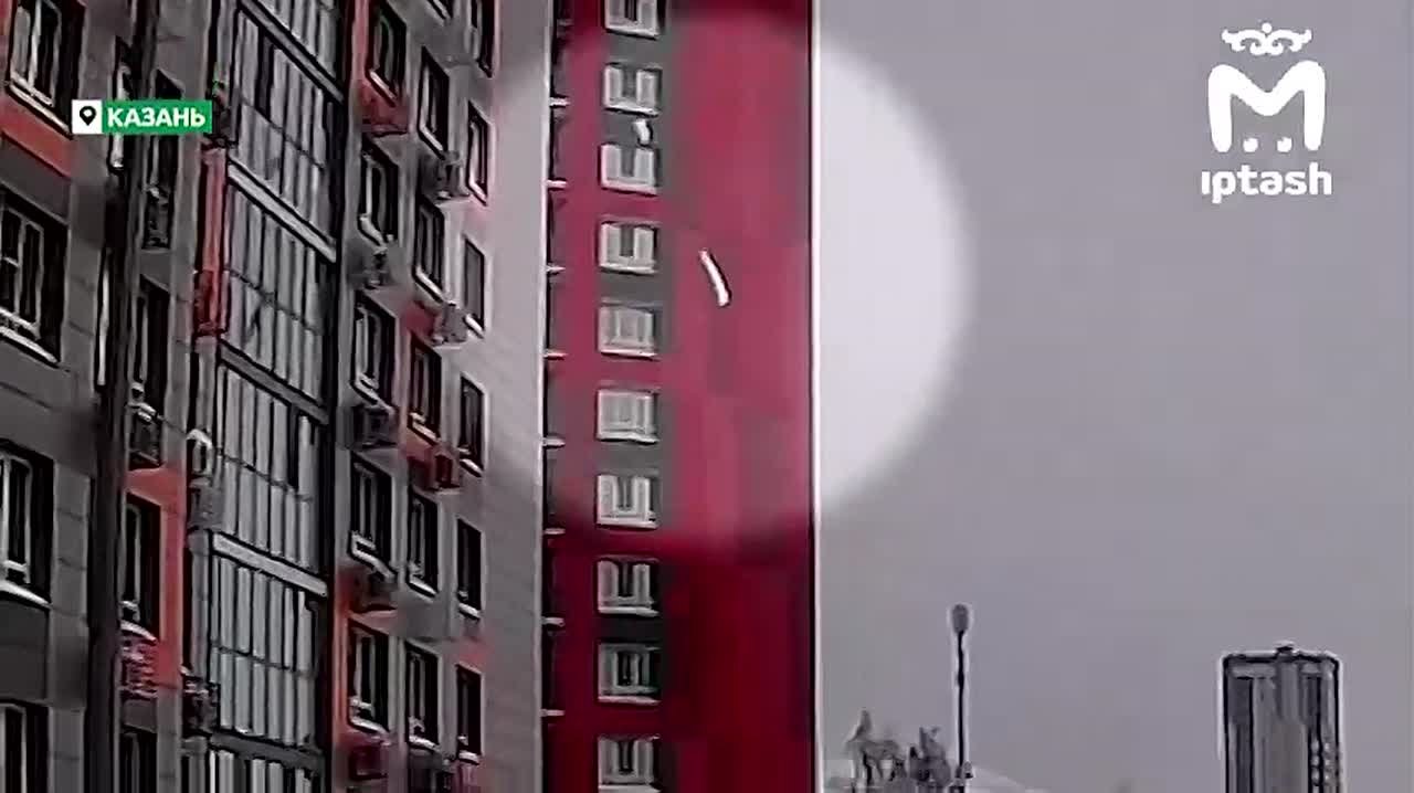 Ещё одна машина пострадала от снега. В ЖК "Легенда" на Аметьевской магистрали.