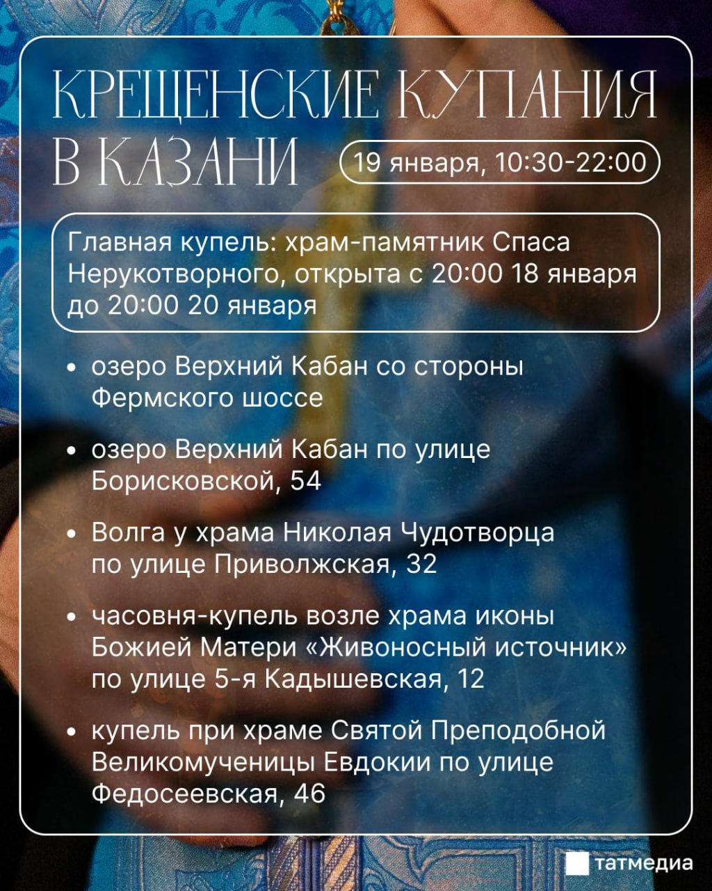 19 января в храмах города пройдут праздничные богослужения. Для участников организуют раздевалки, горячий чай и дежурство спасателей, медиков и полицейских.