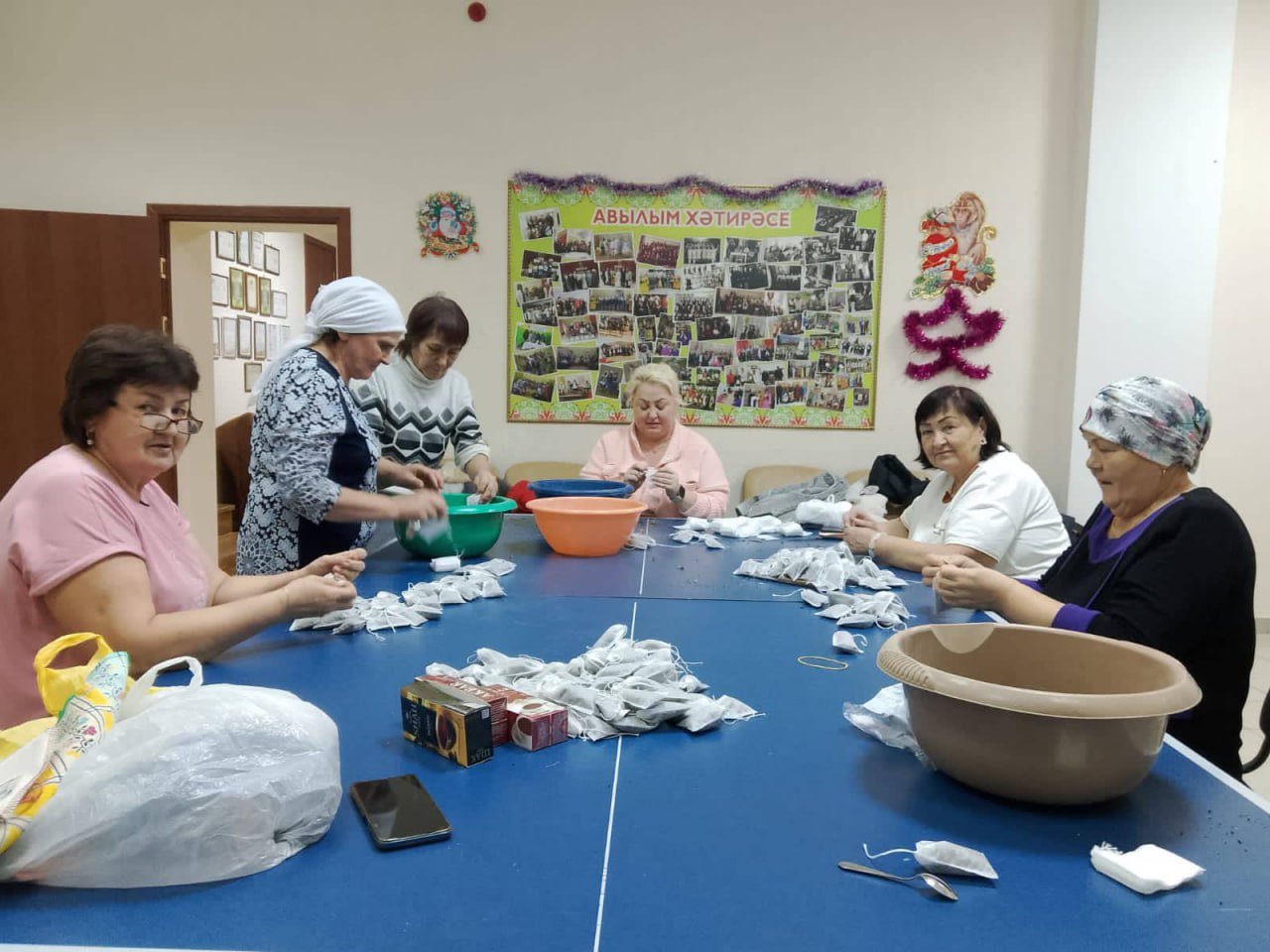 В Тукаевском районе команда волонтёров Малошильнинского сельского поселения за 2,5 часа сплела 334-ю маскировочную сеть. А волонтёры Стародрюшского сельского поселения фасуют ароматные травяные чаи для бойцов.